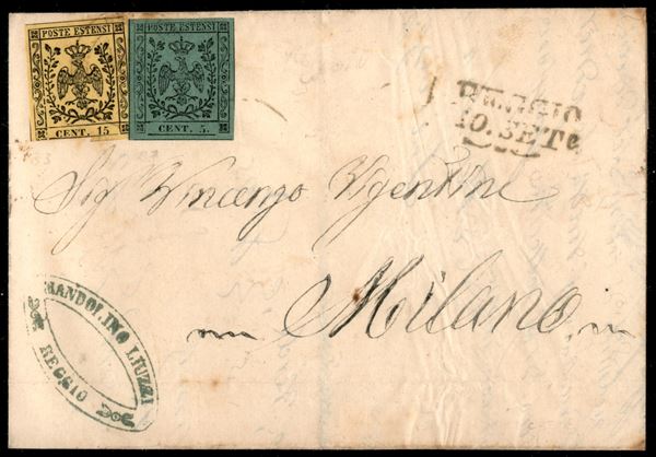 CISAPENNINO - Governo Provvisorio - Reggio 10.9.1859 - 15 cent (3) sforbiciato in basso + 5 cent (8) su lettera per Milano