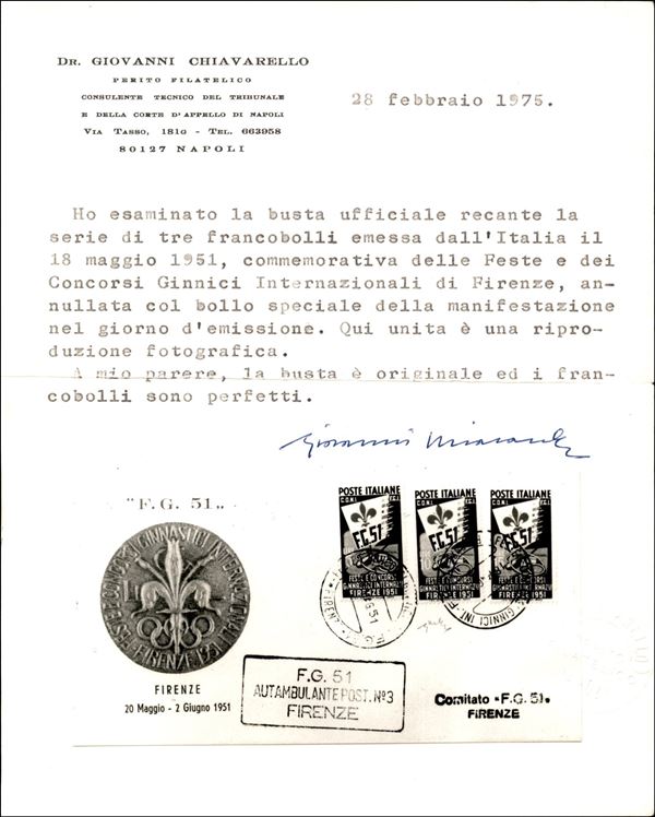 Ginnici serie completa (661/663) su lettera FDC non viaggiata - cert. Chiavarello