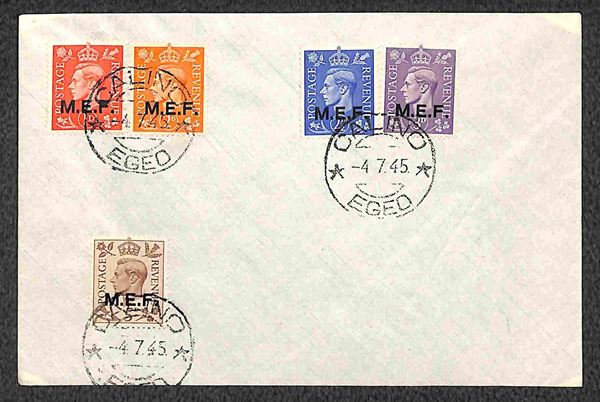 ISOLE DELL’EGEO - CALINO + COO + LERO + RODI + SCARPANTO + SIMI - 6 buste con i soprastampati (6/10) usati nell’Egeo