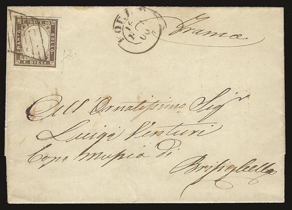 Lettera con 10 cent bruno nerastro (148b) Sardegna da Forlė 16 feb. 60 per Brisighella Governo Provvisorio - cert. Bottacchi
