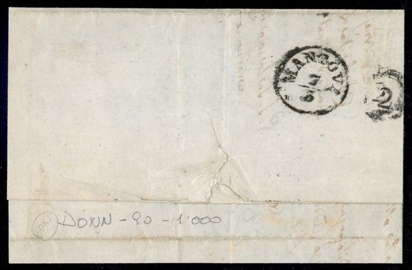 Lettera con 25 cent bruno rosso (8) da Piacenza 5 mar. 57 per Mantova - cert. E. Diena - ex coll. Rothschild