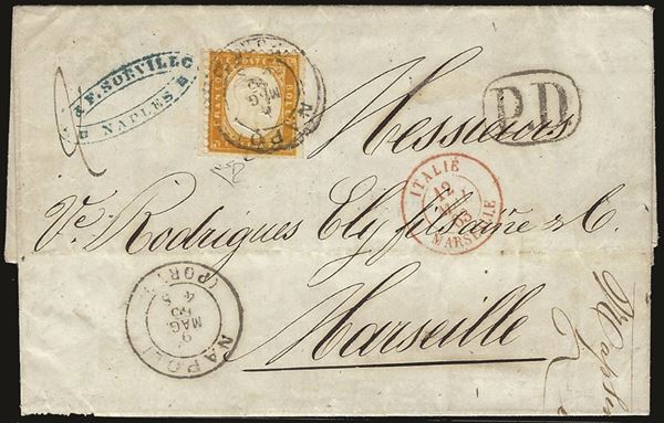 Lettera con 80 cent arancio (4) da Napoli Porto 9 mag. 65 per Marsiglia - insieme molto fresco - cert. E. Diena