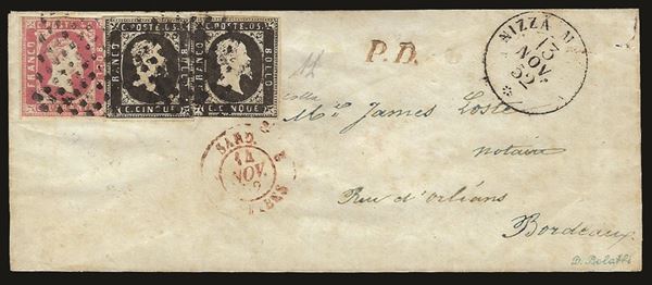 Lettera con coppia 5 cent nero + 40 cent rosa da Nizza Maritt. 13 nov. 552 per Bordeaux - cert. E. Diena