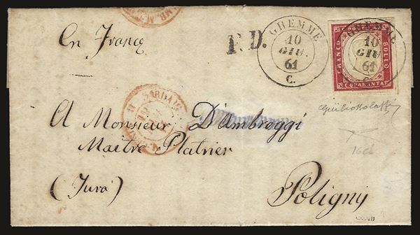 Lettera da Ghemme 10 giu. 61 (P.ti 9) con 40 cent carminio lillaceo (16Cb) per Poligny (Francia) - cert. Bottacchi