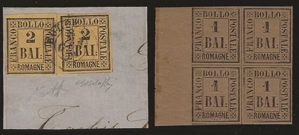 Quartina nuova 1 baj + frammento con due esemplari 2 baj annullo a cerchio - G. Bolaffi