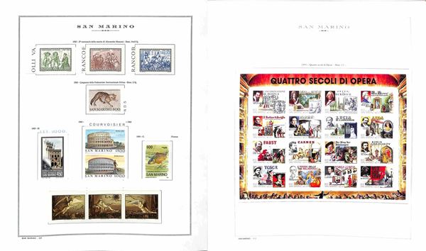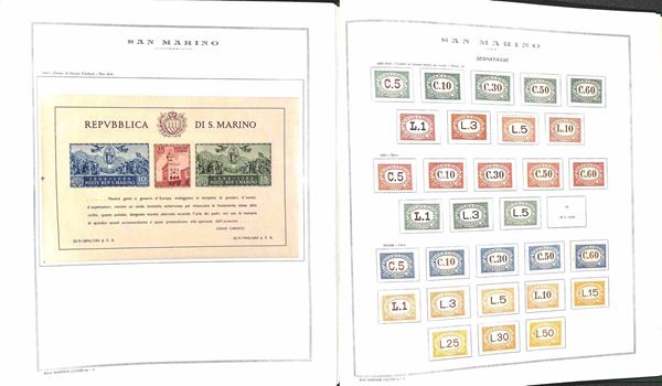 SAN MARINO - 1877/2006 - Collezione molto avanzata montata in un album King Marini con valori nuovi in serie complete di ordinaria pił servizi (pochissime mancanze) + due album con Interi Postali nuovi e usati e valori pił recenti - completano l'insieme 4 classificatori anche con facciale - alto valore di catalogo (oltre 40.000) - merita attento esame