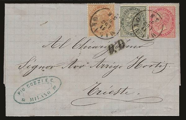 Tricolore da Milano 11 lug. 65 per Trieste con annullo a cerchio e bollo P.D.