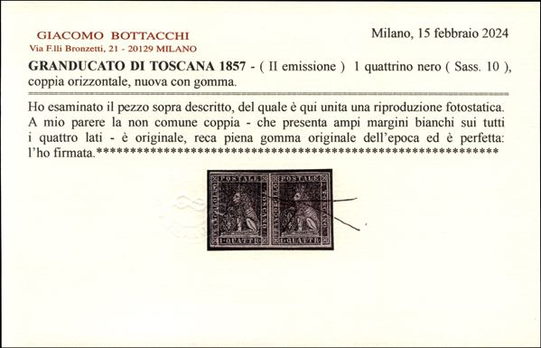 1 quattrino nero II emissione (Sass. 10) coppia ampi margini e freschissimo cert. Bottacchi