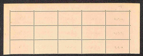 1943/44 - 2,50 lire Espresso (20/IId) - blocco di 15 bordo foglio con soprastampe oblique del secondo tipo pił varietą di composizione - gomma integra - rarissimo insieme - firma M. Raybaudi