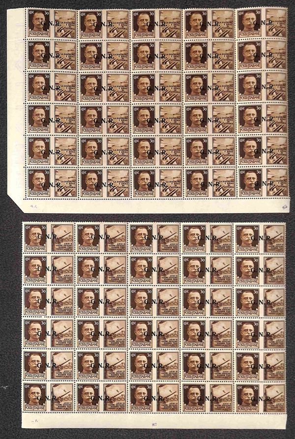 1944 - Propaganda di Guerra - Serie completa 12 valori (13/24) in blocchi angolari di 30 - il pił grande blocco conosciuto - gomma integra