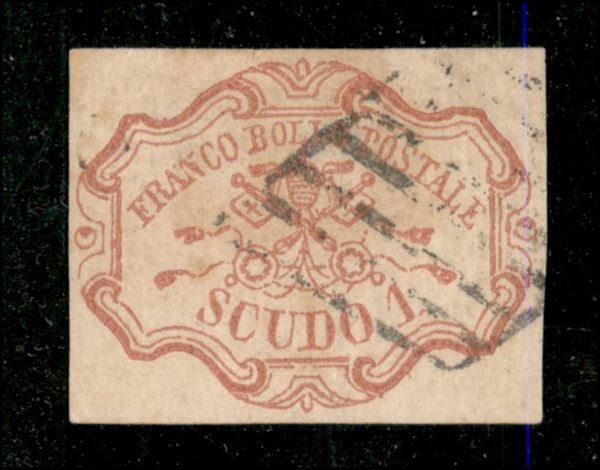 1 scudo (11) con grandi margini e annullo a griglia leggero - con difetti ma ugualmente splendido - Diena