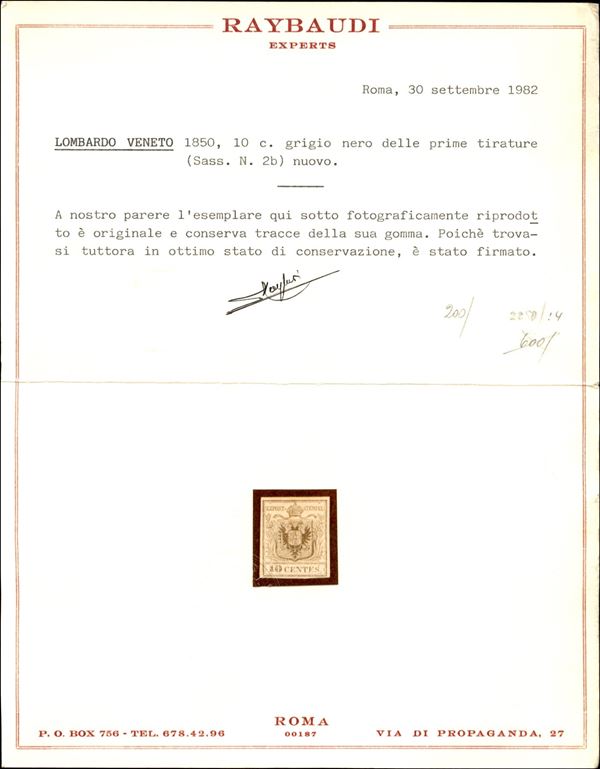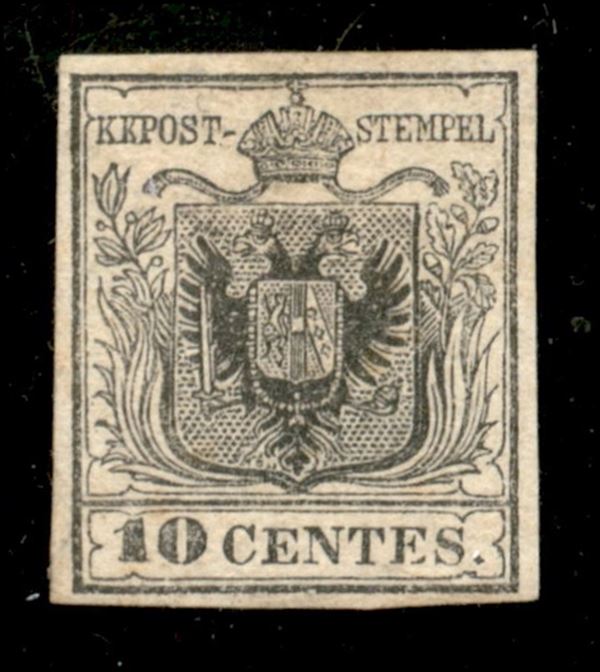 1850 c.10 grigio nero, I tiratura (2b) nuovo con tracce di gomma, cert. Raybaudi