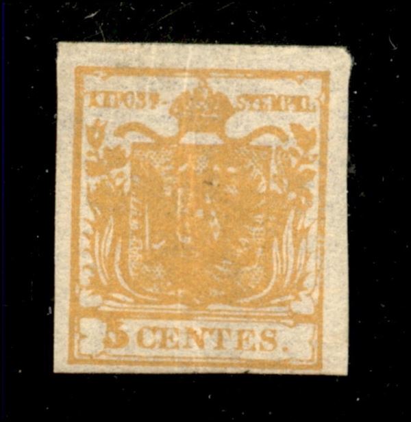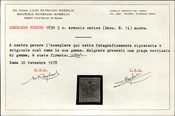 1850 c.5 arancio carico (1i) nuovo con gomma originale, grinza verticale di gomma, molto fresco e vivace di colore, cert. Raybaudi