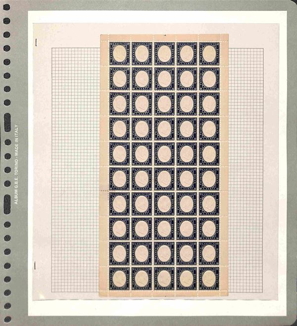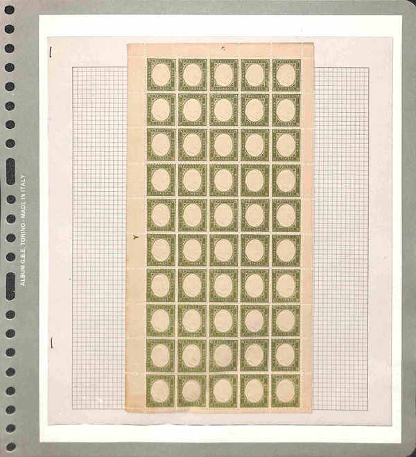 1855/1863 - Ristampe (Usigli) - 5 cent 20 cent e 40 cent (13 + 15/16) in fogli di 50 con perforazioni - completi di bordi - nuovi