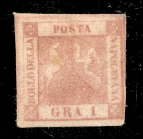 1858 gr. 1 rosa lillaceo I tavola (3a), assottigliato, nuovo con gomma originale, cert. Cardillo