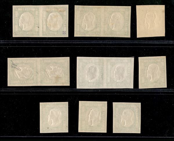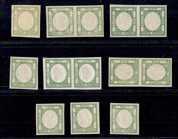 1861 - Insieme di quindici esemplari del 1/2 tornese verde (17) - piena gomma originale - tinte diverse - cinque singoli + cinque coppie - ottima qualità