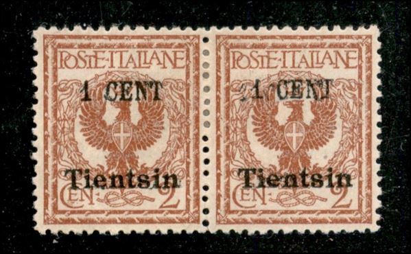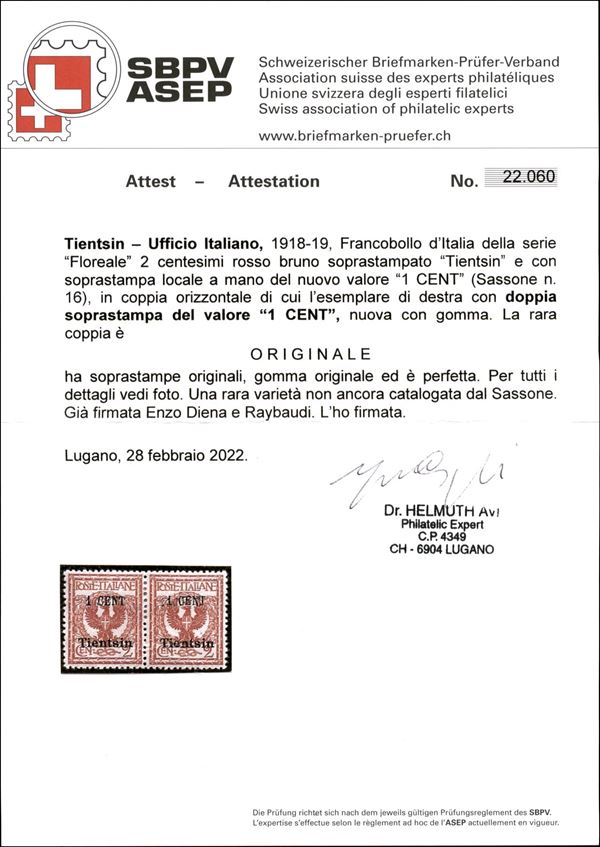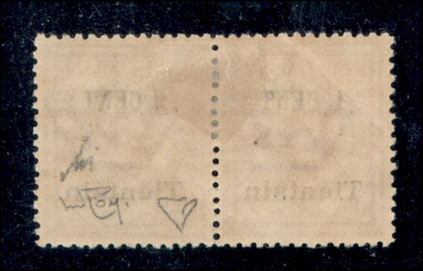 1918/1919 - 1 cent su 2 (16 varietà aa) - parziale doppia soprastampa - ottima centratura - gomma originale - non catalogato - En. Diena + M. Raybaudi + cert. Avi