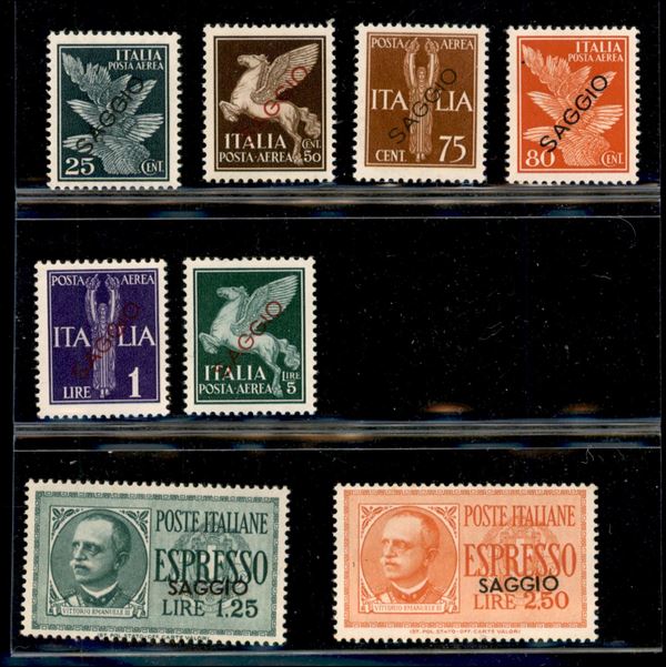 1930/1932 - Insieme di 8 valori dell'Imperiale Aerea + Espressi (10/14 + 16 + 15/16) con la soprastampa "Saggio" - nuovi con gomma originale - Diena