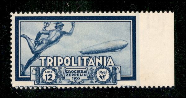 1933 - 12 lire Zeppelin (25a - Aerea) non dentellato a destra con bordo di foglio - gomma integra
