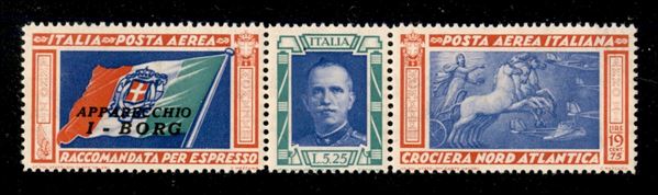1933 - Trittico - I-BORG (51Da) con varietà ciuffo - gomma integra - Bolaffi