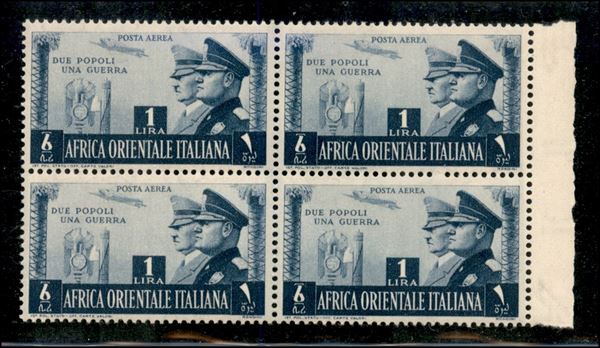 1941 - 1 lira Fratellanza d'Armi (20) in quartina - gomma integra