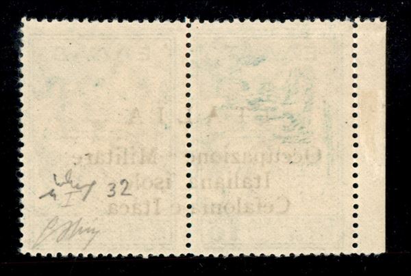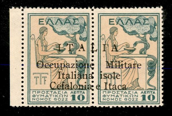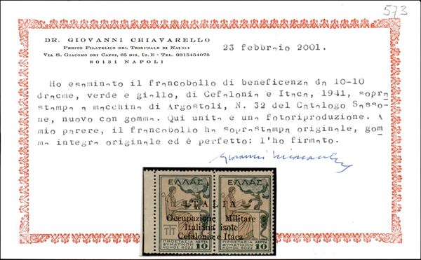 1941 Esemplari in coppia Beneficenza l.10+10 verde e giallo (32 cat.760) nuovo con gomma integra, Bdf a sinistra, cert.Chiavarello