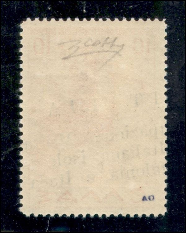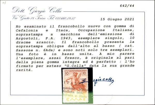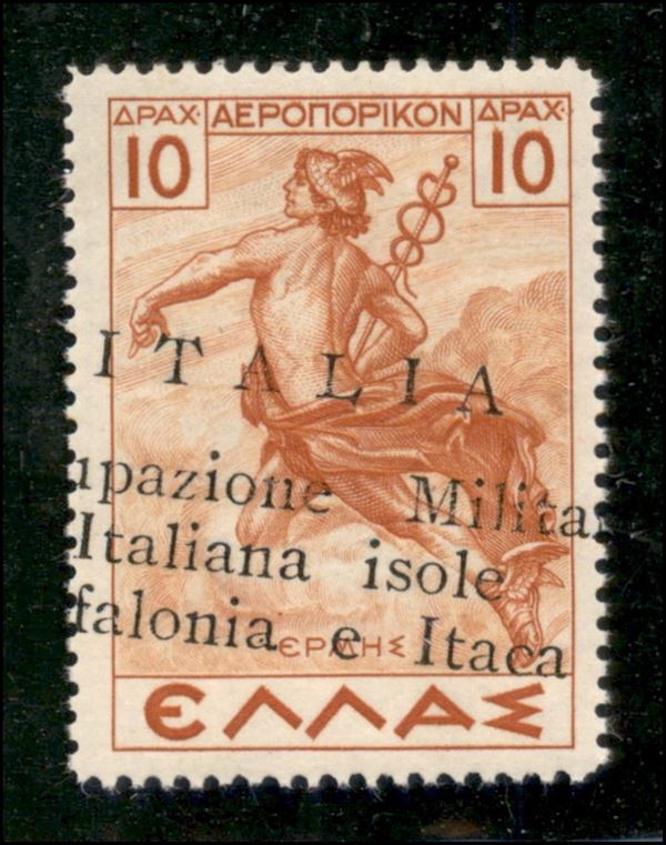 1943 - 10 dracme P. Aerea (6Ada) con soprastampa obliqua dall'alto al basso - gomma originale integra - tre esemplari noti - cert. Colla