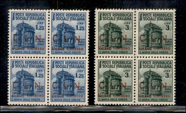 1945 - Monumenti Distrutti - serie completa in quartine - 10 valori (1/10) - alcuni errori (C punto piccolo + L punto piccolo) - gomma integra