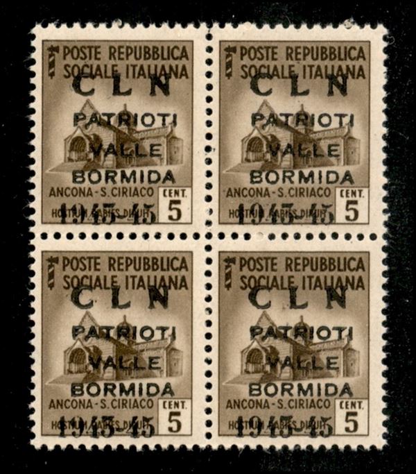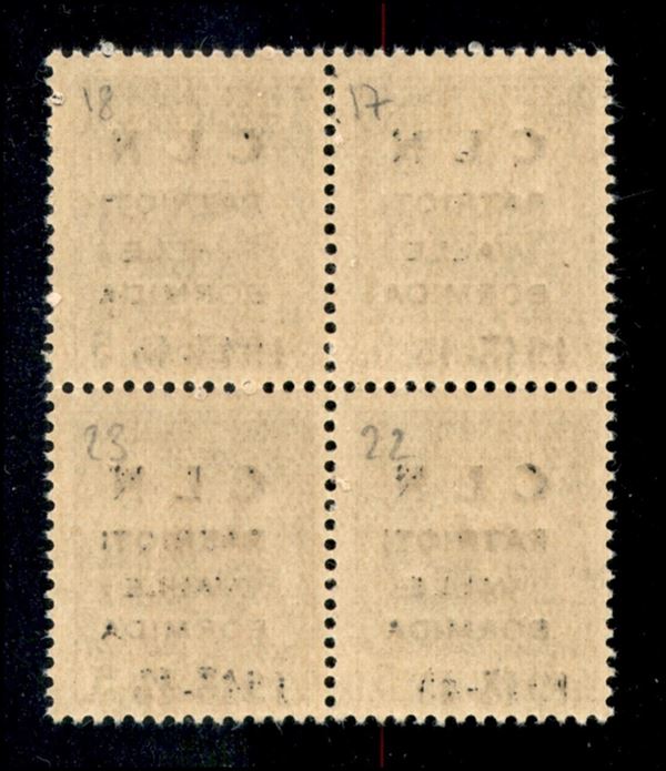 1945 - Soprastampa modificata - 5 cent (1A) in quartina - gomma integra - cert AG