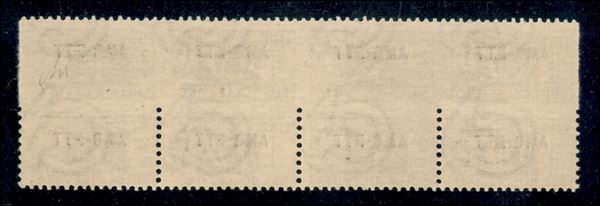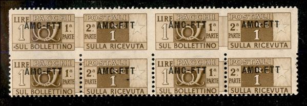 1949/1953 Quartina del 1 lira Pacchi Postali (13q) con esemplari superiori dentellati solo in alto - gomma integra - solo dieci coppie note - cert. Avi