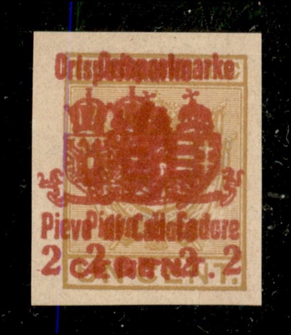 2 su 1 cent Pieve di Cadore (42aa) con doppia soprastampa di cui una spostata a sinistra