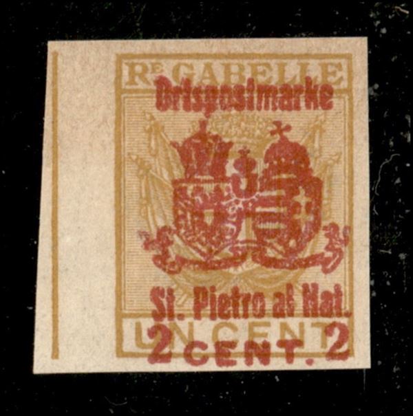 2 su 1 cent S. Pietro al Mat. (54b) con soprastampa fortemente spostata in basso