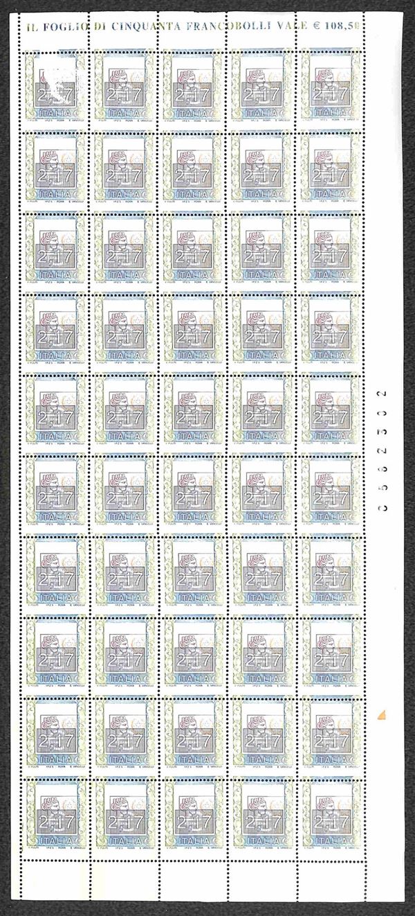 2002 - 2.17 euro (2582 - CEI 2627b) con dentellatura e testina spostate - intero foglio di 50 - gomma integra