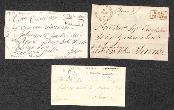 ANTICHI STATI - TOSCANA - 1858/62 Sei lettere non affrancate con bolli delle STRADE FERRATE