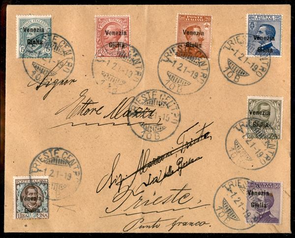 Busta affrancata con valori di Floreale Leoni e Michetti (21/24 + 26/27 + 29) - Trieste 21.1.19 - Bottacchi