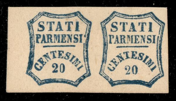 Coppia c.20 azzurrro, bordo di foglio a sinistra, firma A.D., G.Bolaffi
