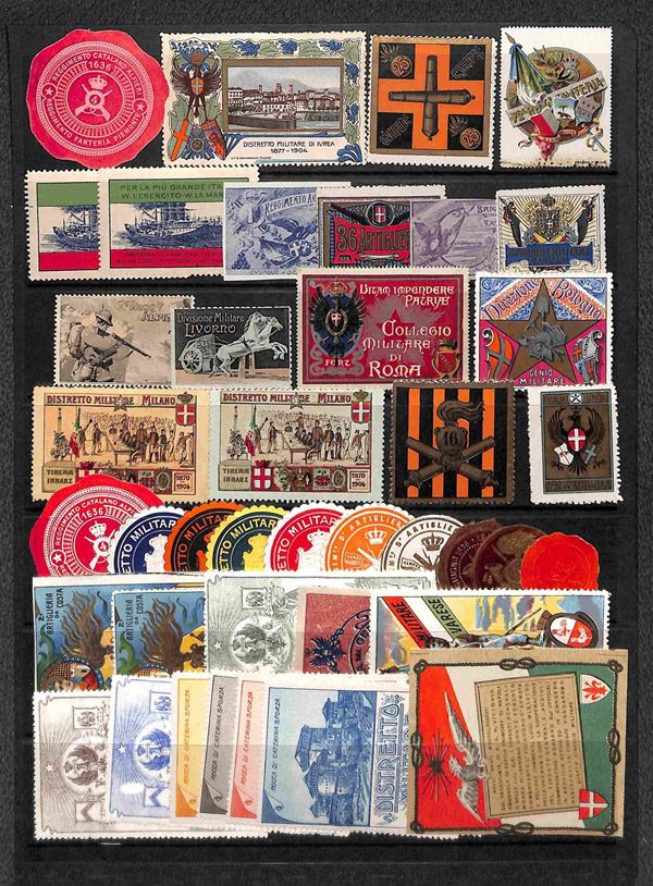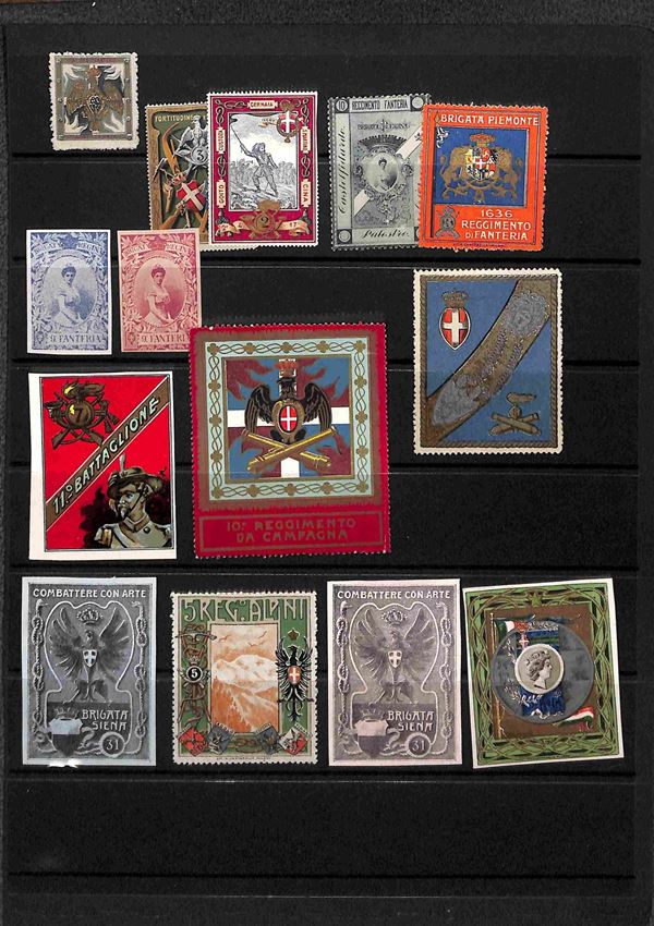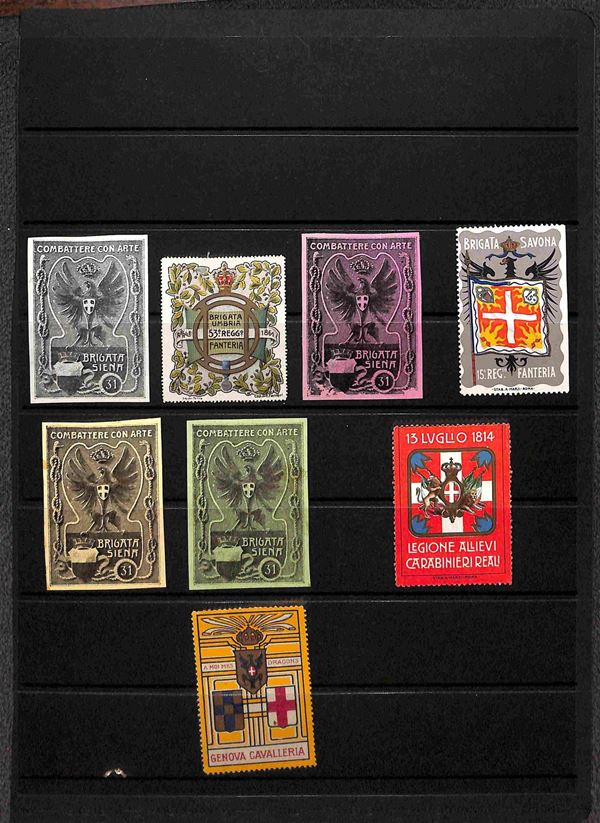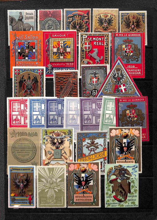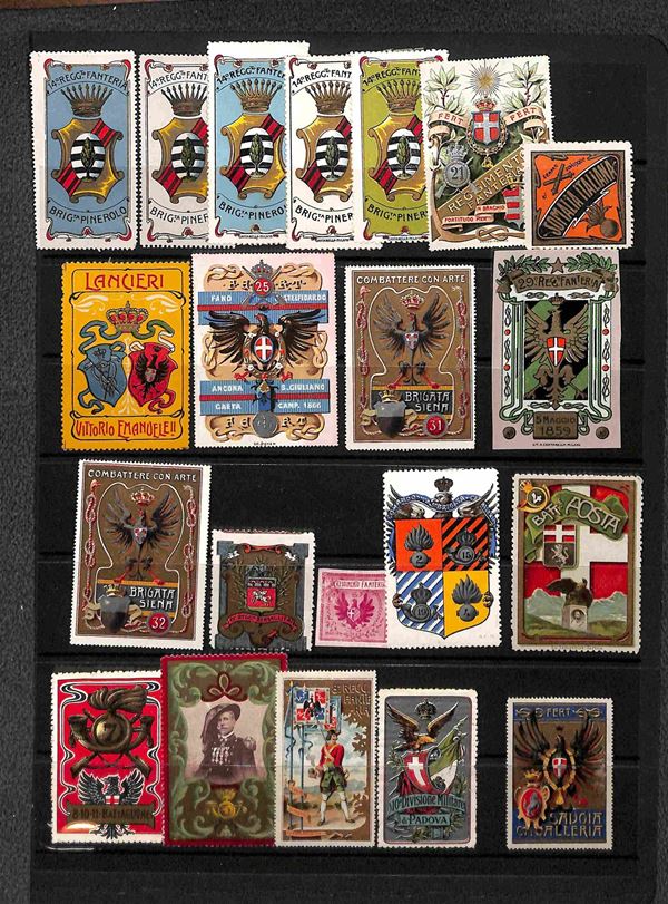 ERINNOFILI - 1900/1910 - Selezione di 110 vignette dei diversi reggimenti del periodo montate su quattro fogli d'album - merita esame