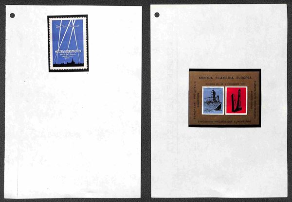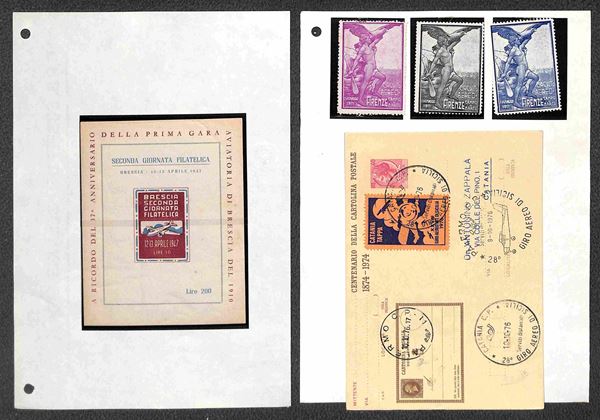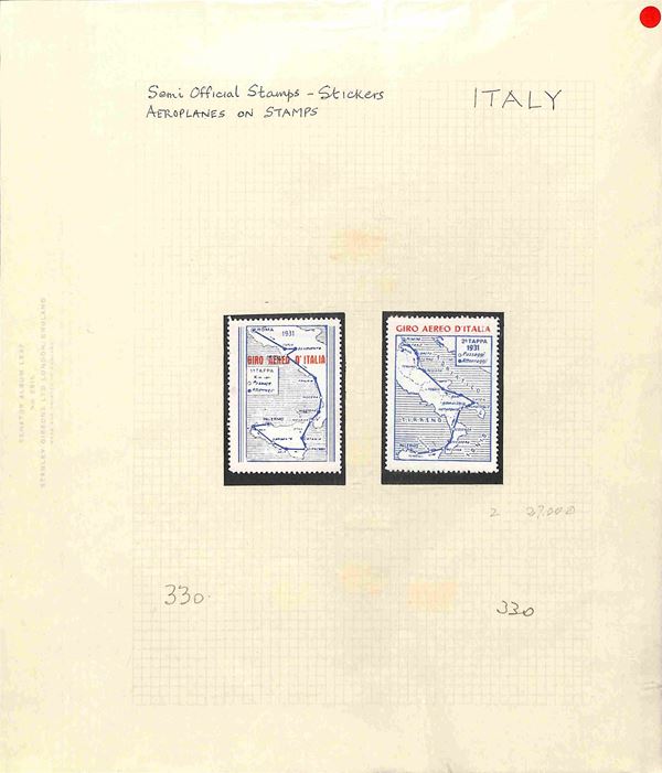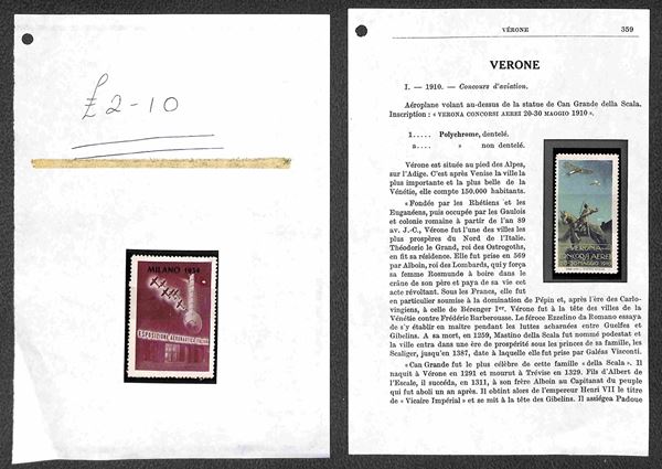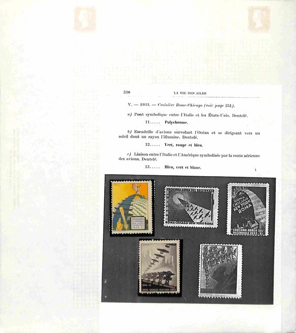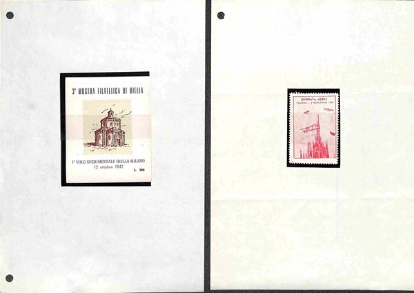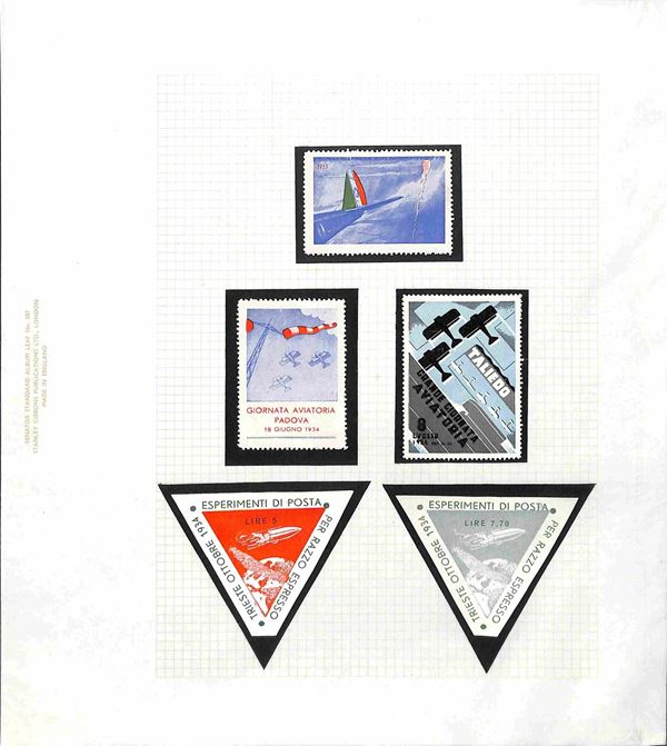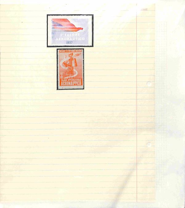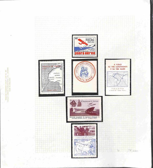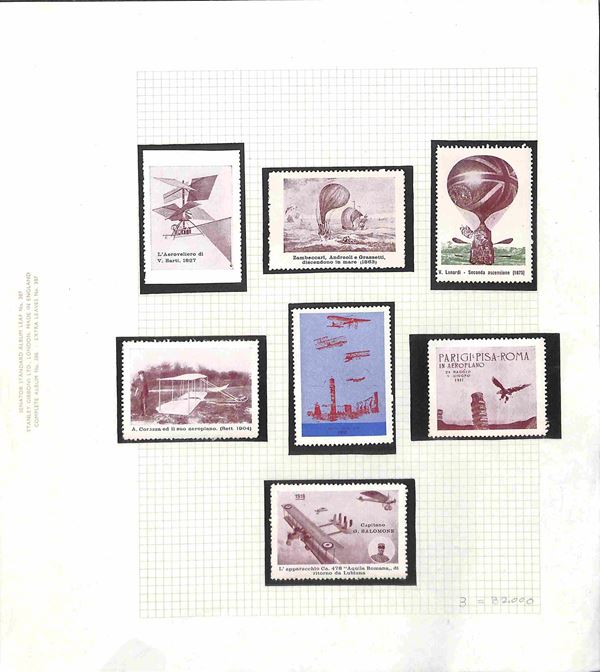 ERINNOFILI - 1910/1970 circa - Insieme di 47 vignette a tema aeronautica montate su fogli artigianali - da esaminare