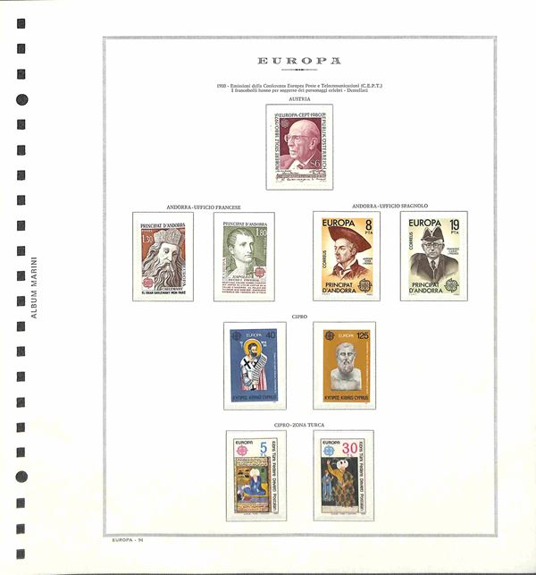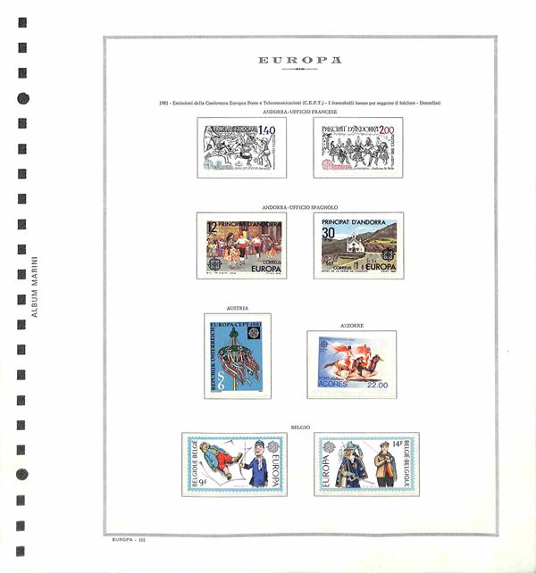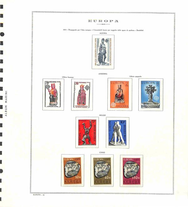 EUROPA CEPT - 1974/1987 - Collezione completa di valori nuovi del periodo in 1 album Marini con cartella - da esaminare
