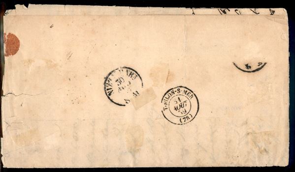 Lettera affrancata con 10 cent bruno grigiastro (14A) + 40 cent rosso scarlatto chiaro (16Aa) da Spezia a Tolone del 27.8.59 - cert. Manzoni