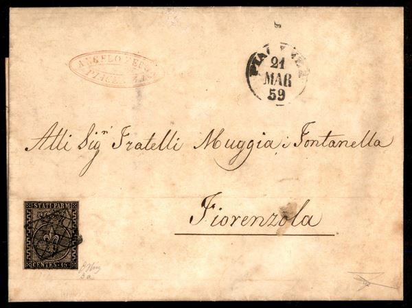 Lettera con c.15 rosa annullato con griglietta da PIACENZA 21 MAR.59 per Fiorenzuola