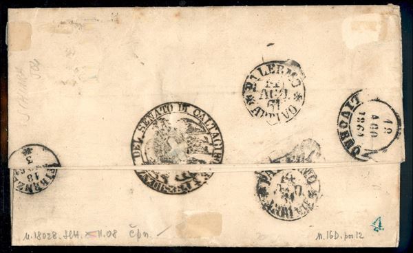 Lettera con c.40 vermiglio mattone chiaro posizione 12 con filetto di riquadro completo sui quattro lati, da CALTAGIRONE 12 AGO.61 per Firenze