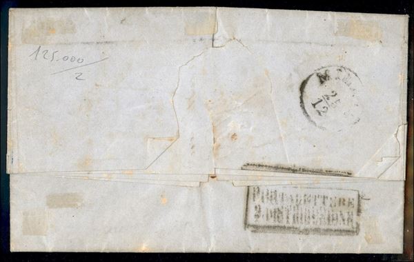 Lettera con due esemplari del 25 cent bruno rosso (8) da PARMA 24 DICEMBRE del 1855 per Milano - rara combinazione anche se con qualche difetto - molto fresca