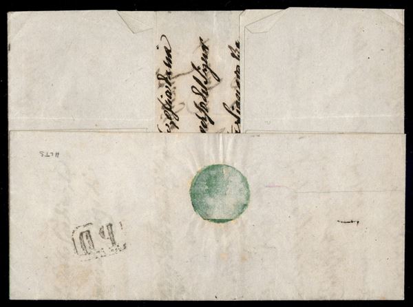 Lettera con striscia di tre c.10 bianco, applicata a cavallo della missiva da PARMA 3 MAGG.59 per Genova, ultimo giorno del primo periodo del Governo Provvisorio, il bollo VIA DI SARZANA dimostra le difficoltà ad inoltrare la posta attraverso il normale percorso del Passo Cento Croci (via di Borgotaro) durante gli eventi bellici. Nonostante i difetti si tratta di una rarità