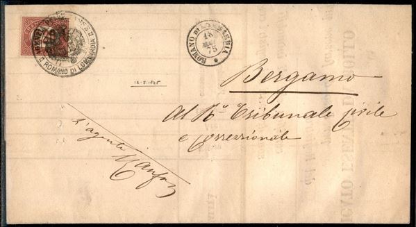 Lettera da Romano di Lombardia (BG) affrancata con 20 cent Servizio (Servizio 6) annullato con bollo dell'ufficio imposte locale - a lato d.c. regolare - di pregio