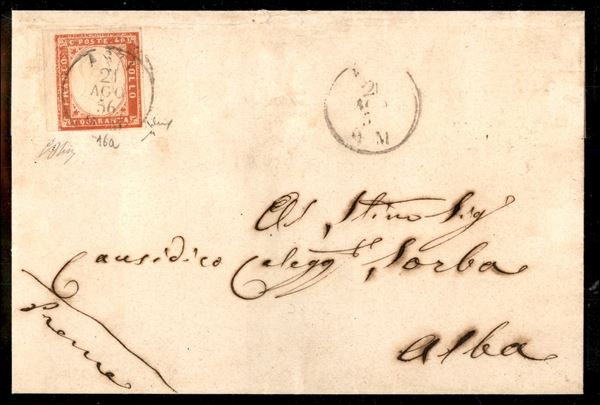 Lettera per Alba affrancata con c.40 vermiglio bordo di foglio a sinistra da ASTI 21 AGO.56 (16a cat.3000) firme G,Oliva e Chiavarello