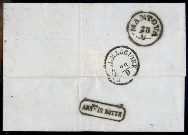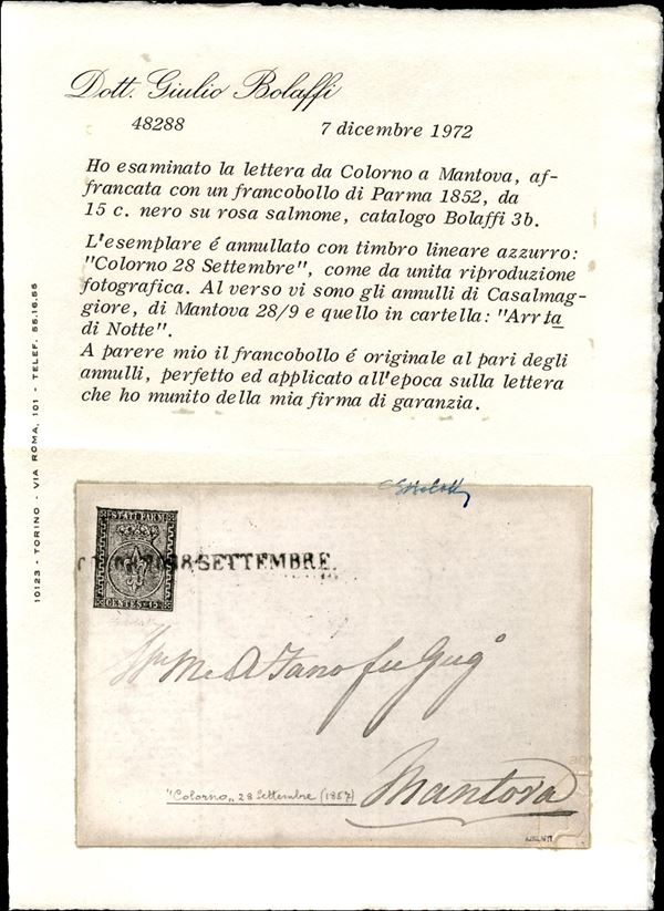 Lettera per il Lombardo Veneto in tariffa di primo porto per la prima distanza con c.15 rosa da COLORNO 28 SETTEMBRE del 1857 per Mantova, cert. G.Bolaffi