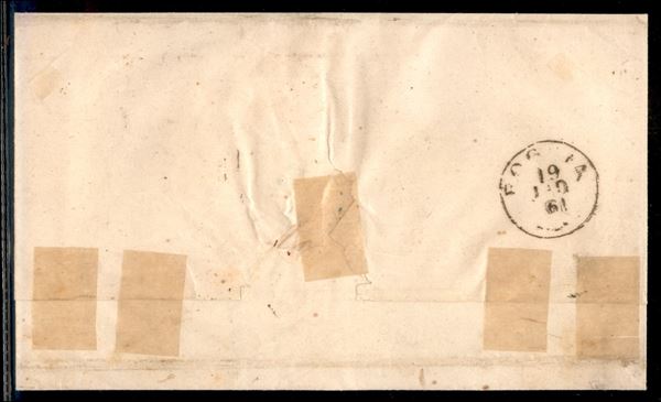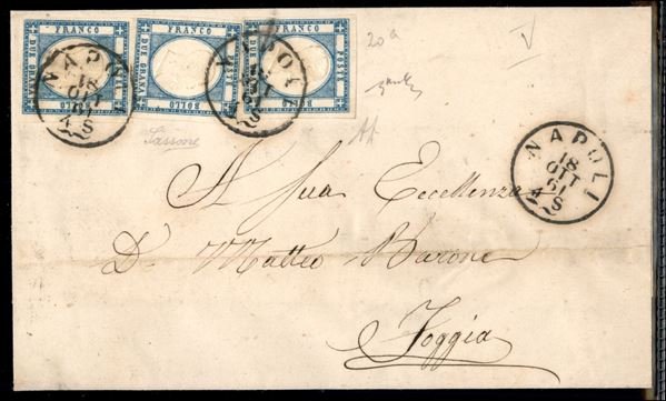 Lettera tre porti da Napoli 18 OTT 61 per Foggia affrancata con tre esemplari del 2 grana celeste (20a cat.1450+) - firme Sassone + AD + Chiavarello