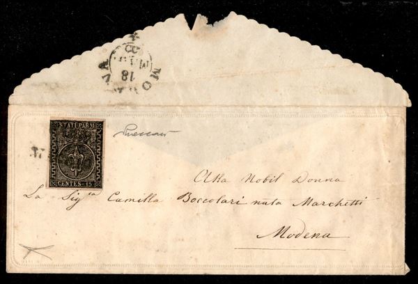 Lettera valentina affrancata con c.15 rosa da PARMA a Modena, molto rara