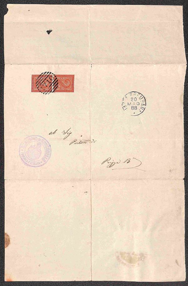 Mandato di pagamento del comune di Roncobello (BG) del 13.3.88 con tassa assolta con 5 pił 1 cent (37 + T14) mista due Re - raro insieme - Raybaudi